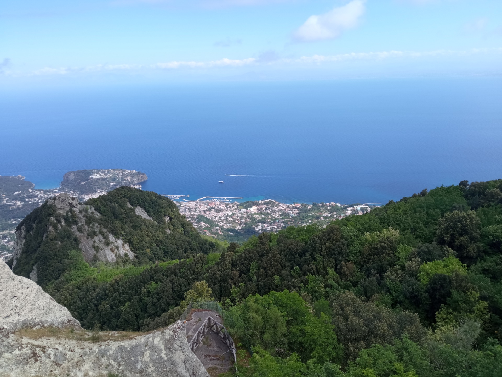 Na vrchol je to příjemný výšlap do kopce. Jedna část cesty vede úzkou cestou, kterou po obou stranách lemuje mechový okraj lesa. Ta krásná mechová zeleň je až opojná a hypnotizující. Po výšlapu na nejvyšší vrchol ostrova – Monte Epomeo – se kocháme výhledem 360 stupňů do všech stran. Najednou se ostrov zdá být malý a roztomilý, z této vyhlídky lze dohlédnout do všech jeho stran. Ale dostupnost do některých částí ostrova po silnici je obtížnější než se zdá. Občerstvíme naše těla i duši kávou, čerstvým pomerančovým džusem a krásným výhledem z terasy restaurace pod vrcholem.