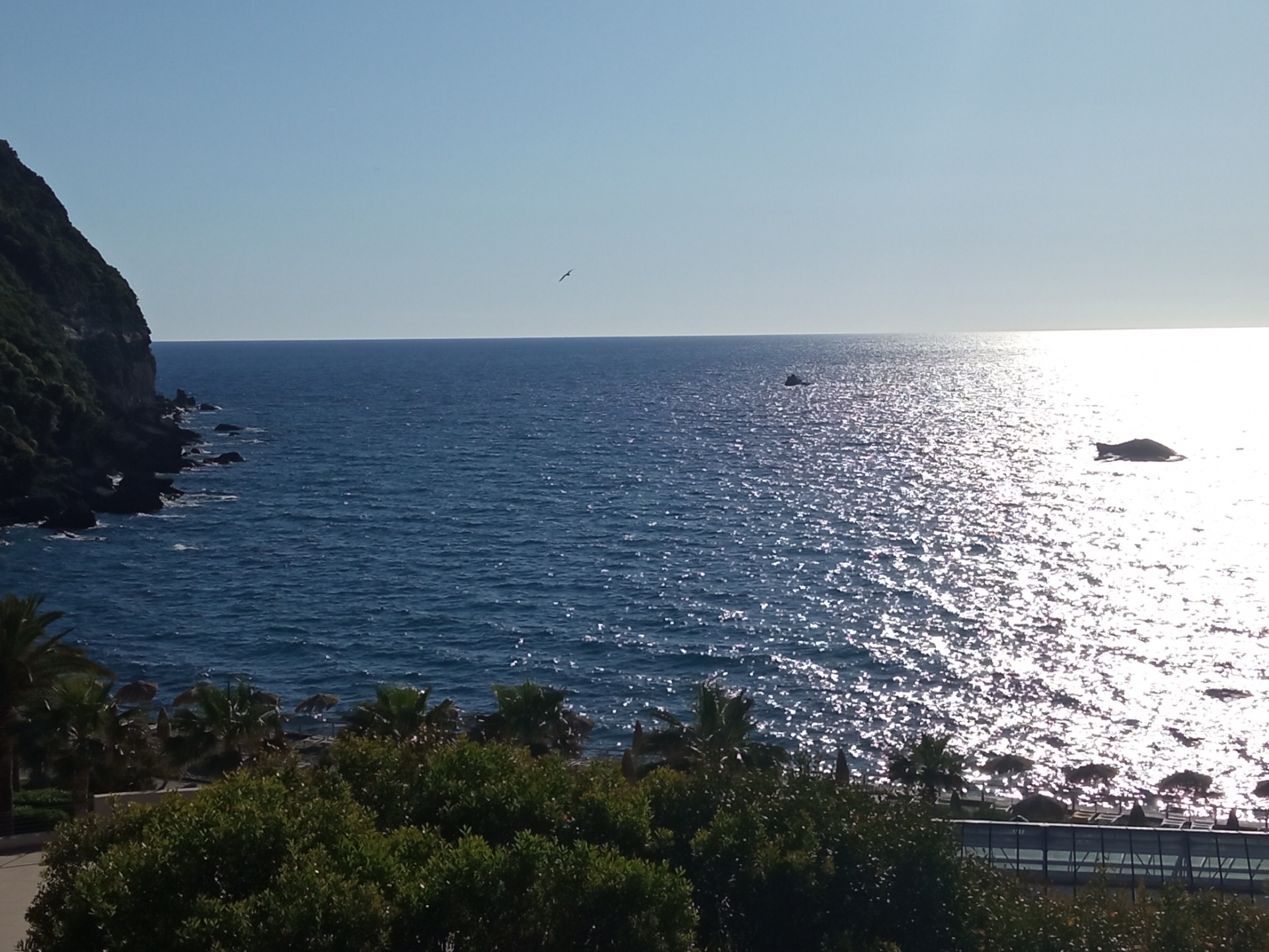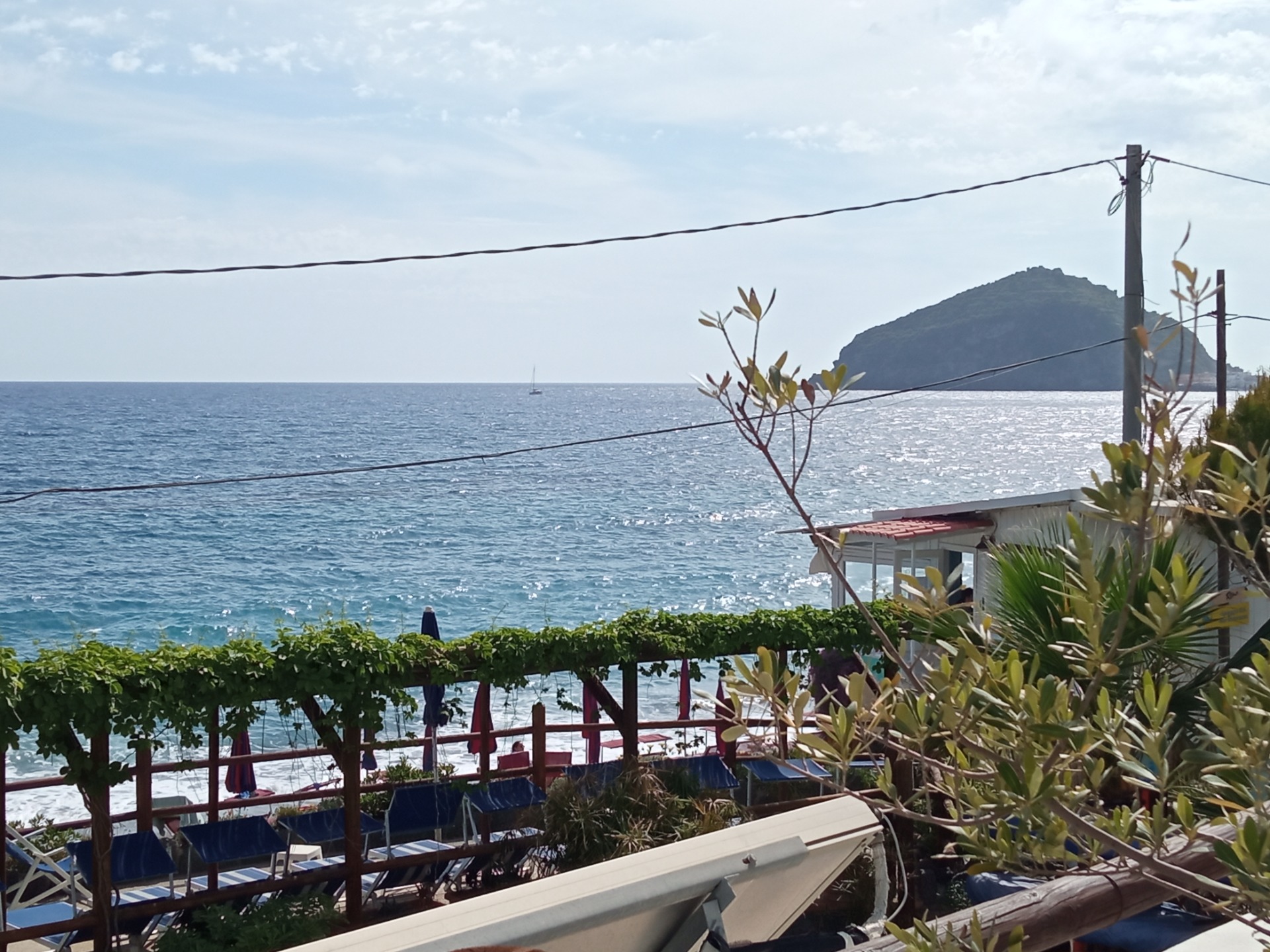 Po téměř hodinové cestě po úzké cestě serpentinami nás autobus vyplivne na jihu ostrova, na okraji města Sant Angelo. Hned první výhled nám bere dech – divoké útesové pobřeží a homole, která je spojená s ostrovem úzkým pruhem pevniny, kde je přístav a malá pláž. K našemu ubytování musíme ještě vyšlápnout kopec úzkou uličkou, ale odměnou je milé přivítání a krásná zahrada plná květin, keřů a citronovníků, nechybí bazén a vířivka a opět ty krásné výhledy!